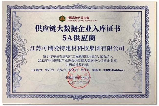 經(jīng)過集團(tuán)公司全體員工的不懈努力,2022年可瑞愛特科技集團(tuán)被中國(guó)房地產(chǎn)協(xié)會(huì)授予全國(guó)“5A供應(yīng)商”的榮譽(yù),“可瑞愛特”高端內(nèi)置遮陽(yáng)百葉中空玻璃得到了眾多知名房企和專家領(lǐng)導(dǎo)的擁護(hù),并在全國(guó)范圍推廣及相互推薦。